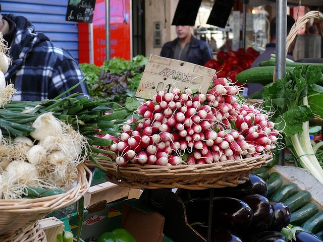 A hot tip for the Aligre market – if you’re heading in from rue Faubourg Saint-Antoine, walk through the first, crowded section of the market and then past the section of (French for organic and biodynamic) stalls around the Place d’Aligre. In the section of rue d’Aligre after the square, closer to rue Charenton, to your right at number 65 you’ll find a large stall run by the brothers Doudou (Douidi, Mounir, Younes and Youssef) who have a great range of produce sourced from local farms ‘produits maraîchers‘. It’s all culture raisonée (minimal pesticides without the bio certification), seasonal and a fraction of the price of the more expensive bio stalls! The friendly stallholders are always happy to give advice and really know their stuff!