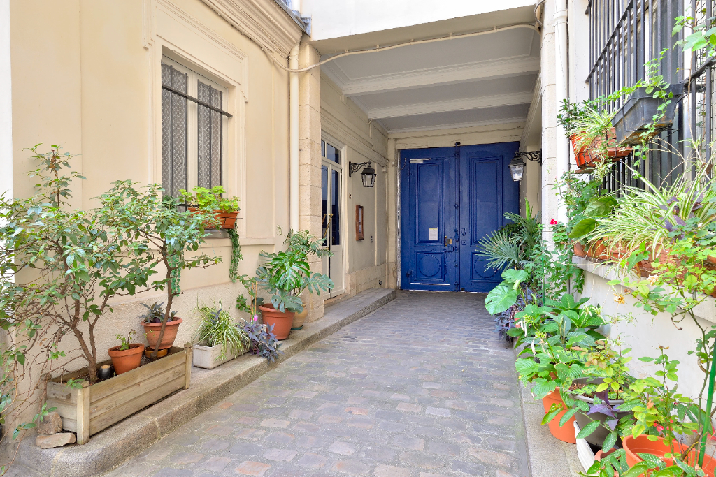 Found on the first floor of a XVII century building in the heart of the Marais, this one-bedroom apartment has a modern layout with beautiful design details.
