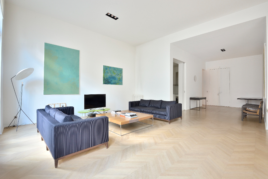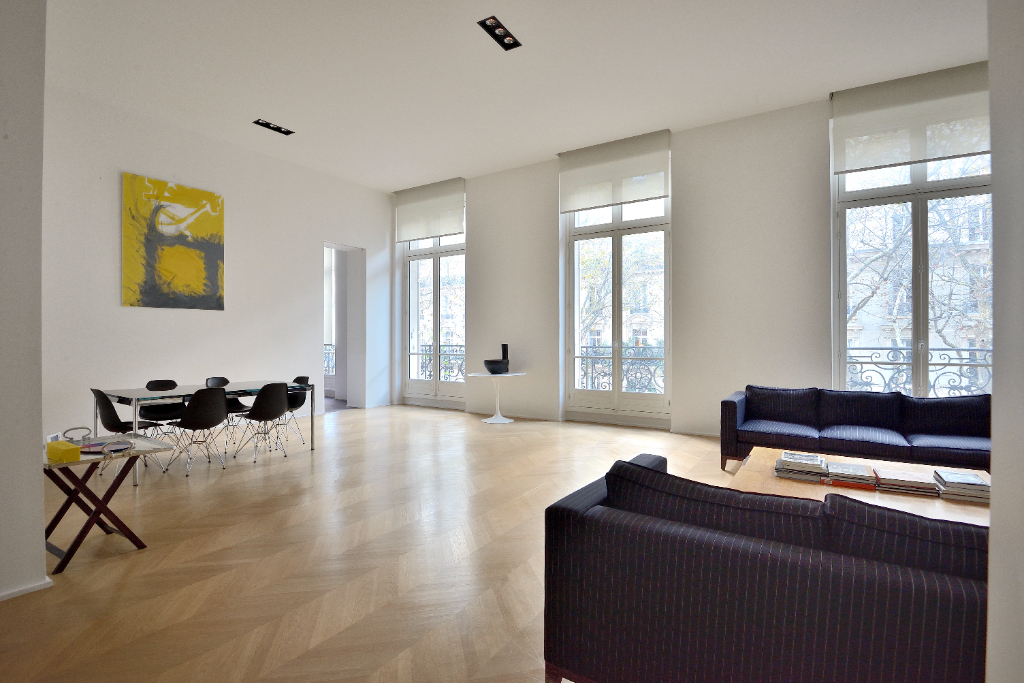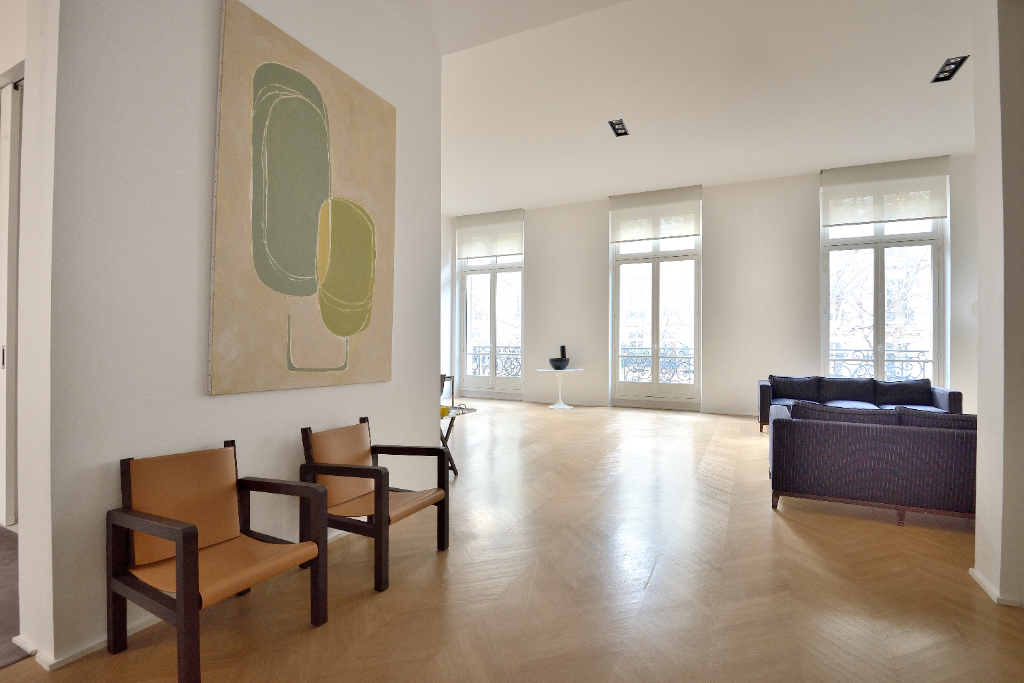 Stunning first floor apartment is close to the chic Parc Monceau district of the 8th arrondissement.