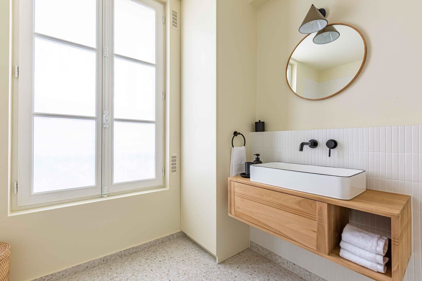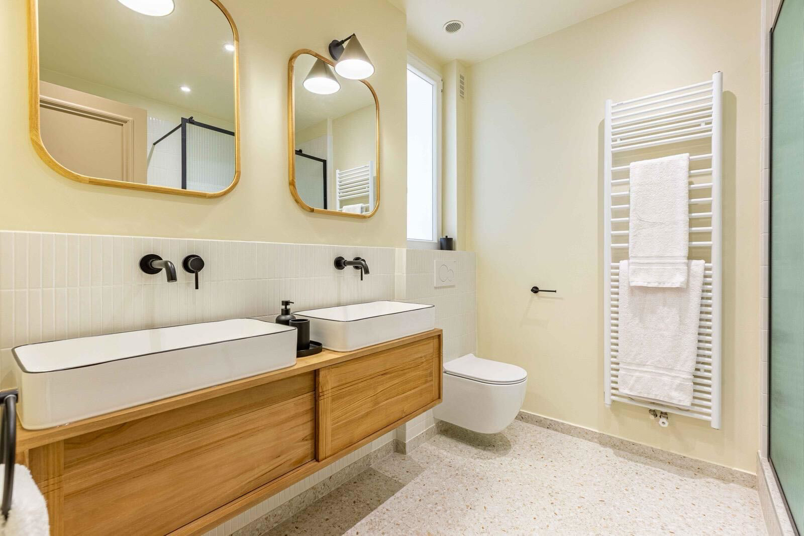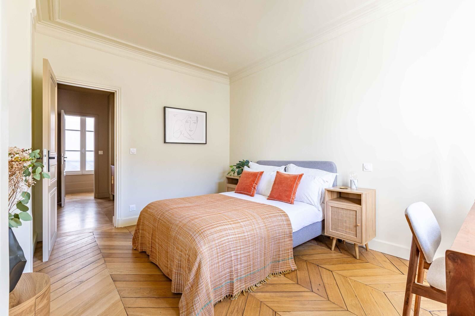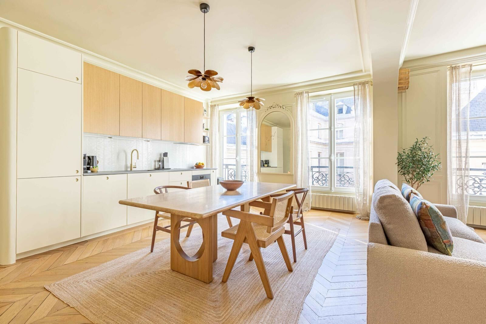 • Situated on the third floor of a traditional Parisian building, the apartment spans 90m² and has been fully renovated to the highest standards, with warm natural materials, clean lines, and elegant finishes throughout.