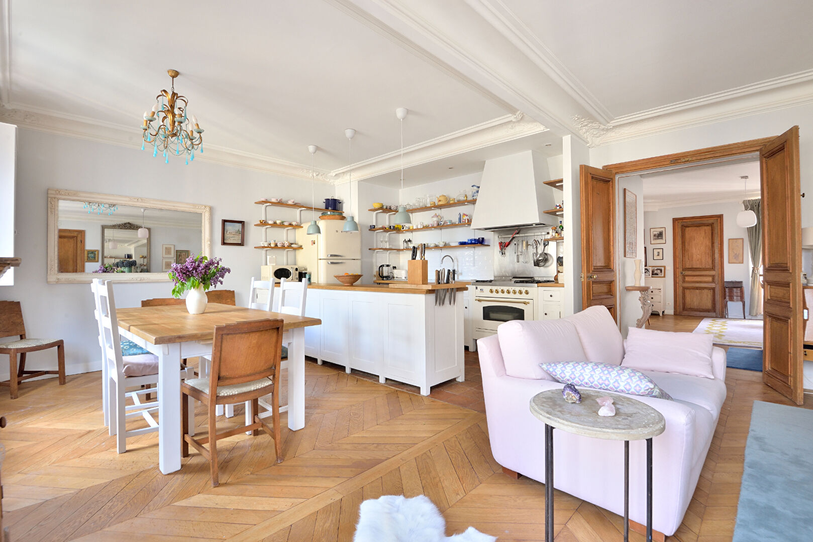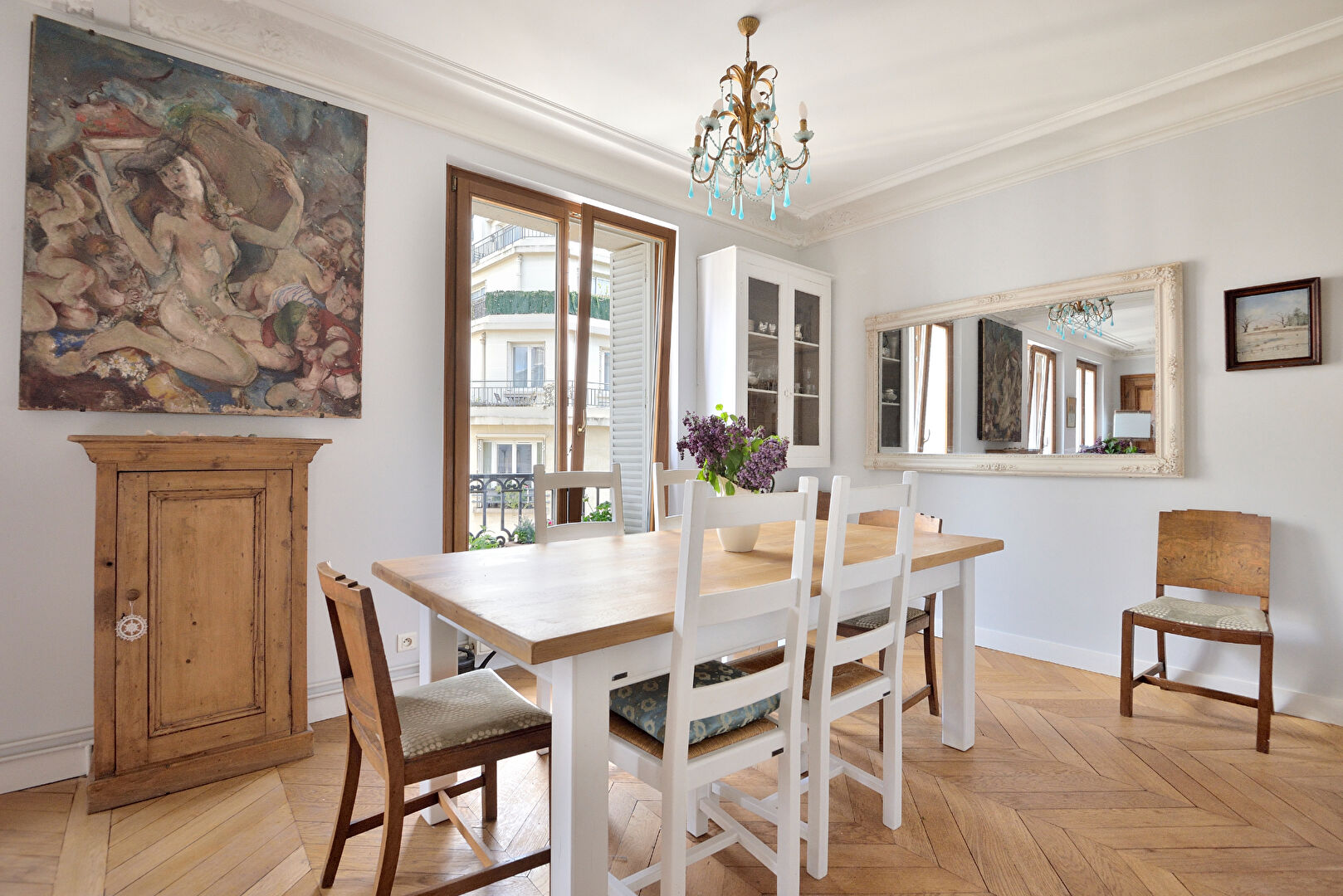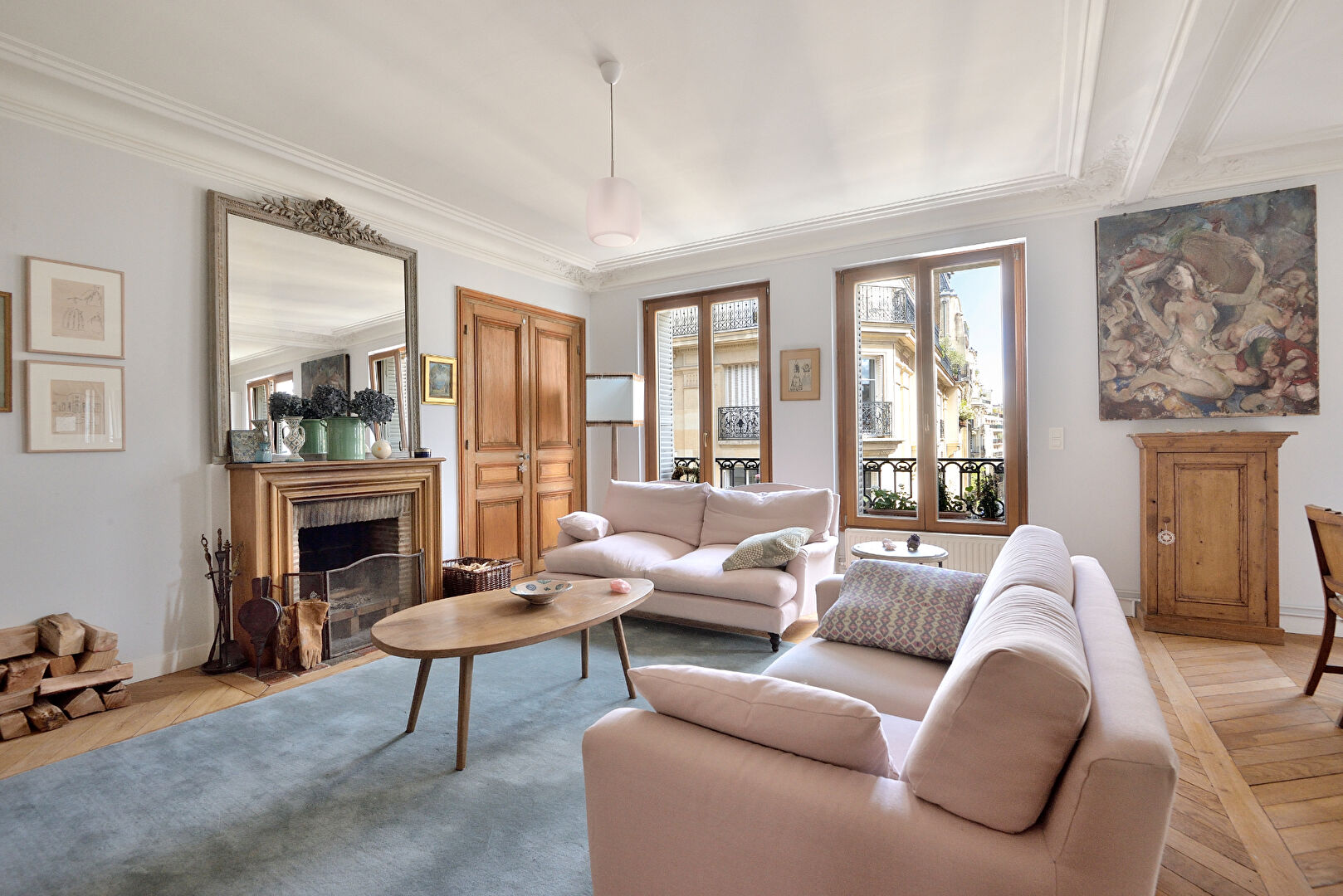 • Flanked down one side by large windows, the apartment is light and bright throughout with open views onto classic Paris apartments.
