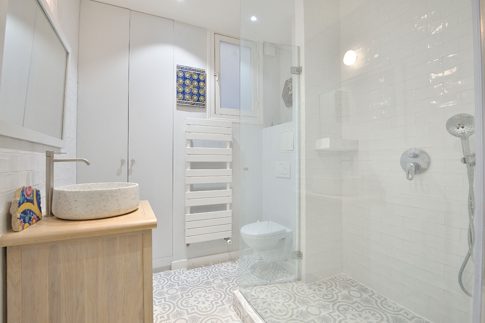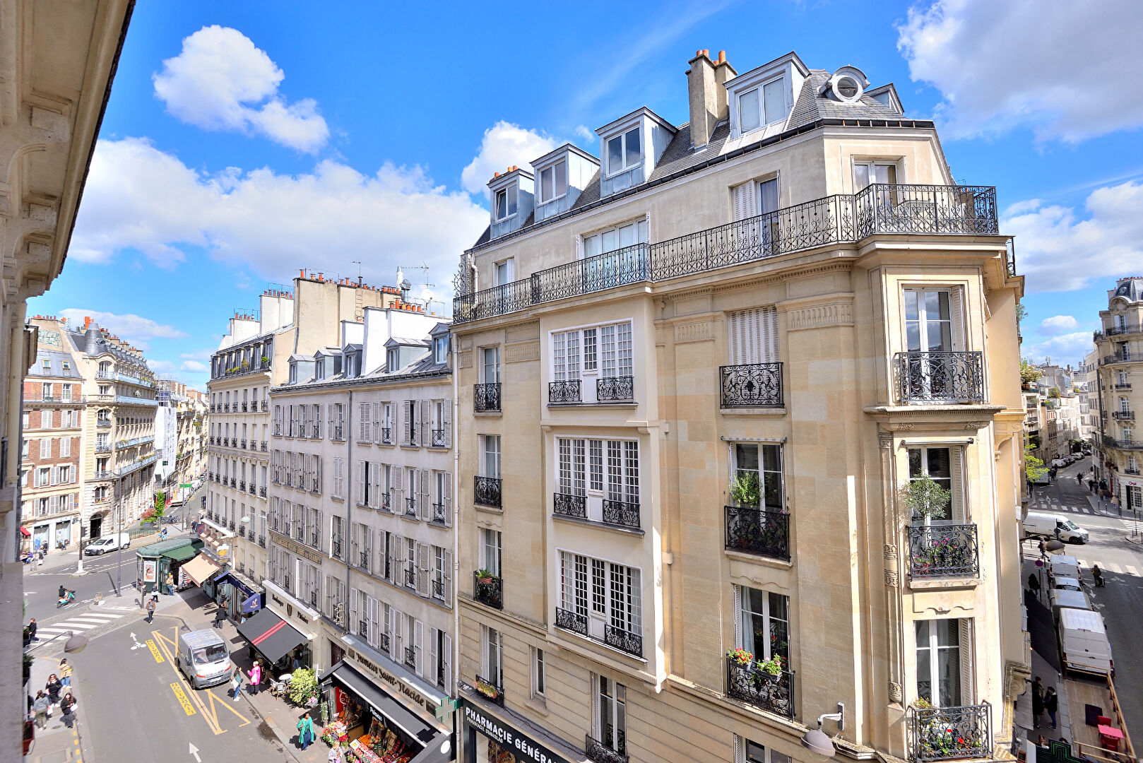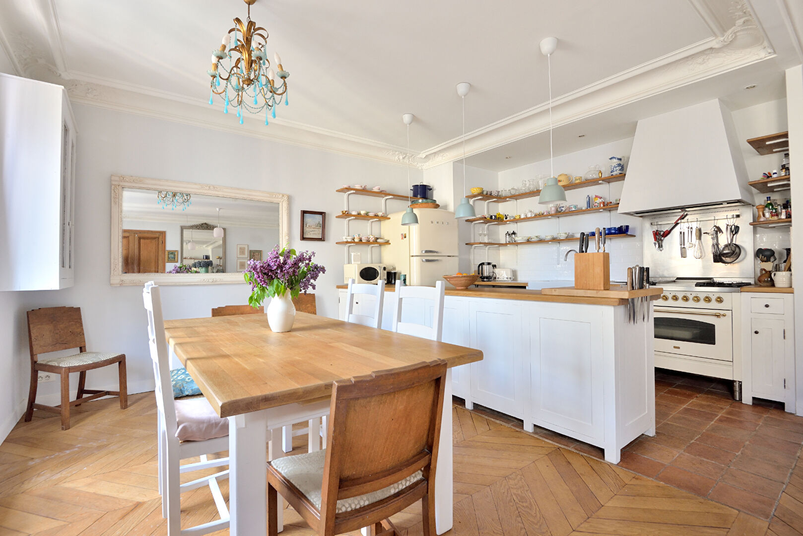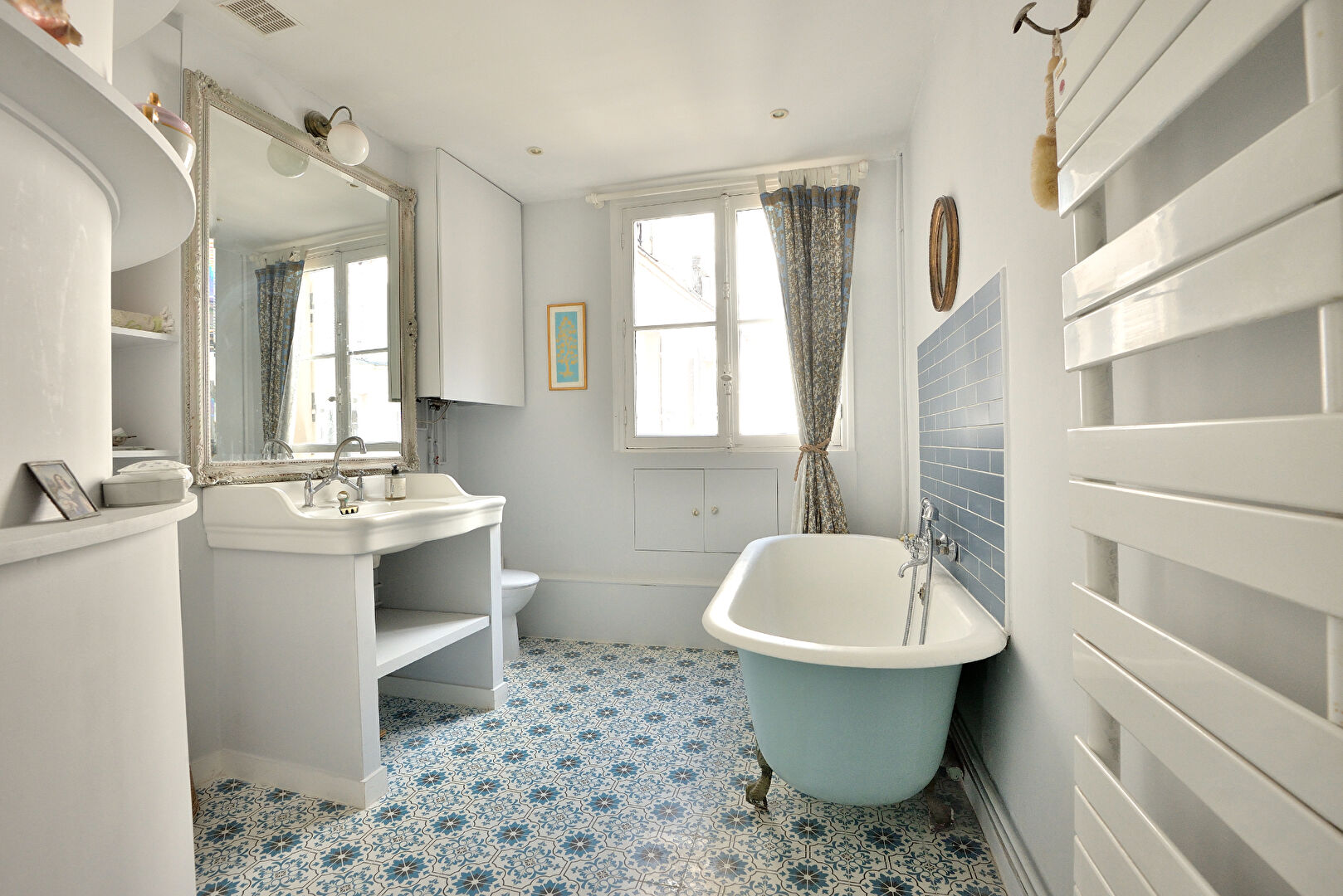 • Flanked down one side by large windows, the apartment is light and bright throughout with open views onto classic Paris apartments.