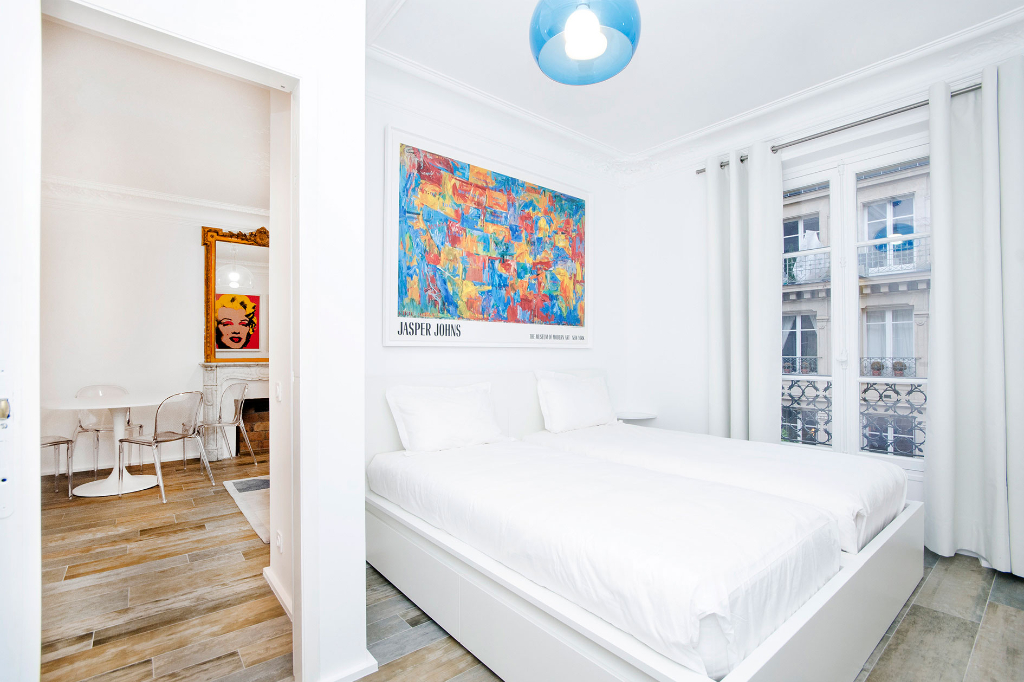 Located on the historic rue de Trésor in the Marais, this design-led luxury apartment is the perfect place from which to enjoy the best of this world-famous district. • Light, bright and open, this gorgeous property offers classic Parisian views over the lovely architecture of the Marais. • A short walk from the renowned art galleries, fashion houses and design shops of this hip area, it is perfectly placed for experiencing the latest haute couture trends. • Beautifully decorated with the latest contemporary furniture, this stylish apartment more than befits its trendy setting. • Offering two separate bedrooms, one with two single beds, this would be an ideal base for a family or a couple planning to welcome guests. • Found on the fourth floor with a lift, the property also comes complete with handy extras such as a washing machine and dryer, dishwasher and underfloor heating. • #VingtLoves: The contemporary design of this stylish apartment is the perfect foil for the historic building. • TV, WIFI and telephone included.